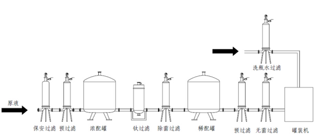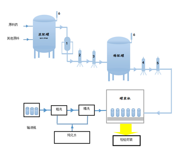 大輸液過(guò)濾工藝簡(jiǎn)圖: