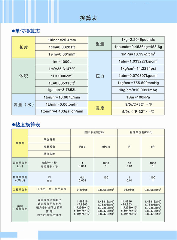 常用過濾精度換算表